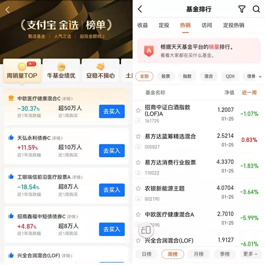 而天天基金网上,中欧医疗健康A近一周销量排在第5位,C份额排在21位。