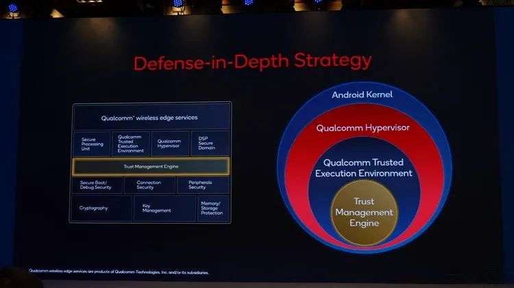 其次,新骁龙8首次集成了新的信任管理引擎(Trust Management Engine)。而它则将起到两个关键作用,一是为新骁龙8的应用运行环境增加更多的“防线”,可以更好地防止数据泄露;二是信任管理引擎创新性地支持了基于云端的信用评估技术。比如说当你连接到某个云电脑、云游戏平台时,云端的服务器就能识别出手机上的信任管理引擎,从而自动为其配置从云端到芯片的信任防护体系。