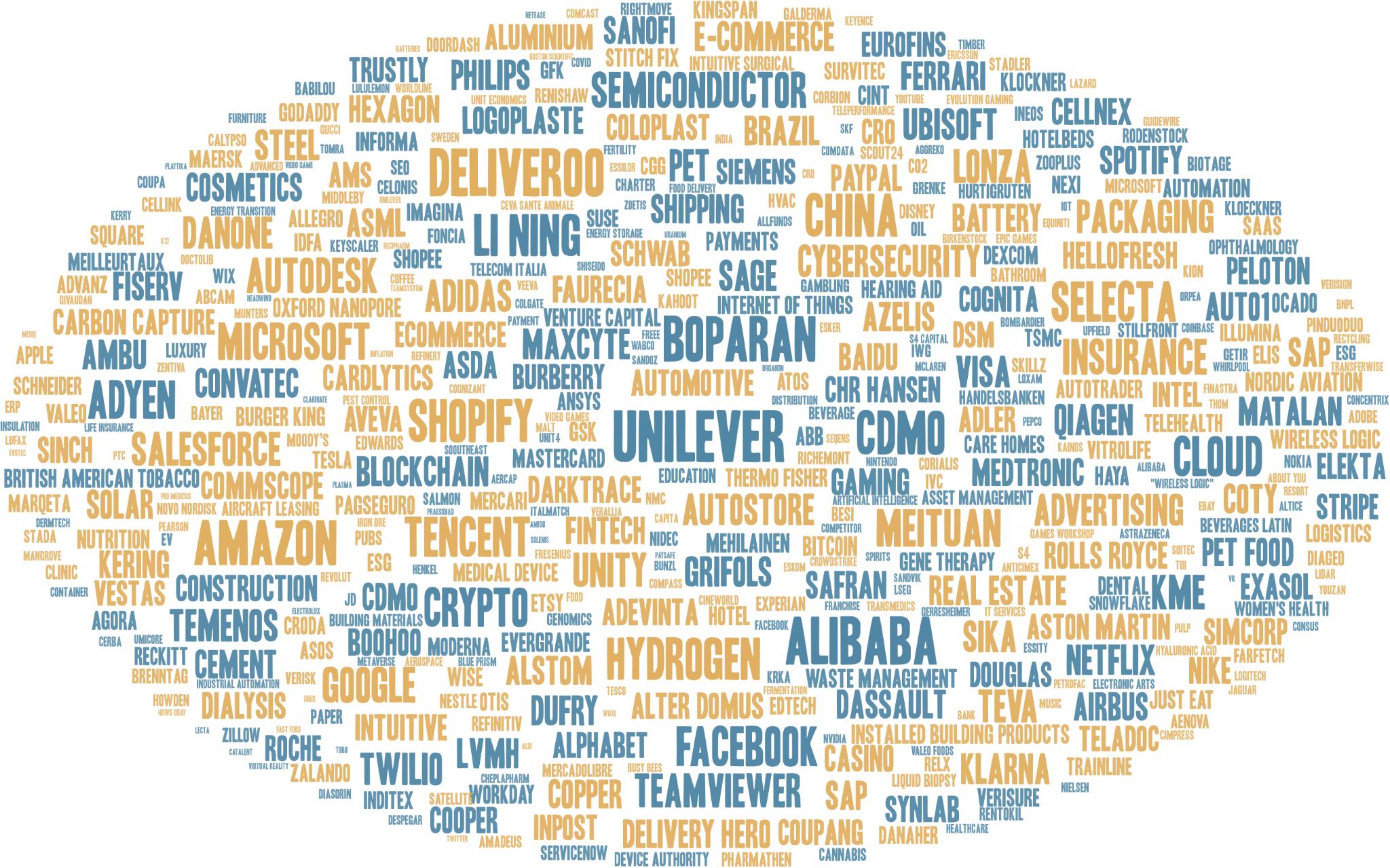 2021年,欧洲投资者2021年十大热词分别是联合利华(Unilever)、户户送(Deliveroo)、阿里巴巴(Alibaba)、Boparan、亚马逊(Amazon)、CDMO、Shopify、中国(China)、氢能(Hydrogen)、李宁(Li Ning) 。从上述数据观察到,欧洲投资者重点关注快费品、外卖、餐饮和网购行业的龙头公司。值得注意的是,除了关注中国的政策对投资机会和风险影响外,欧洲投资者还会关注中国舆论的风向。中国受国潮及“新疆棉”事件影响,导致外国品牌在中国市场出现下滑,以李宁(Li Ning)为代表的中国本土运动品牌大受中国消费者青睐,李宁(Li Ning)成为了欧洲投资者在第一季度的最热门搜索关键词。