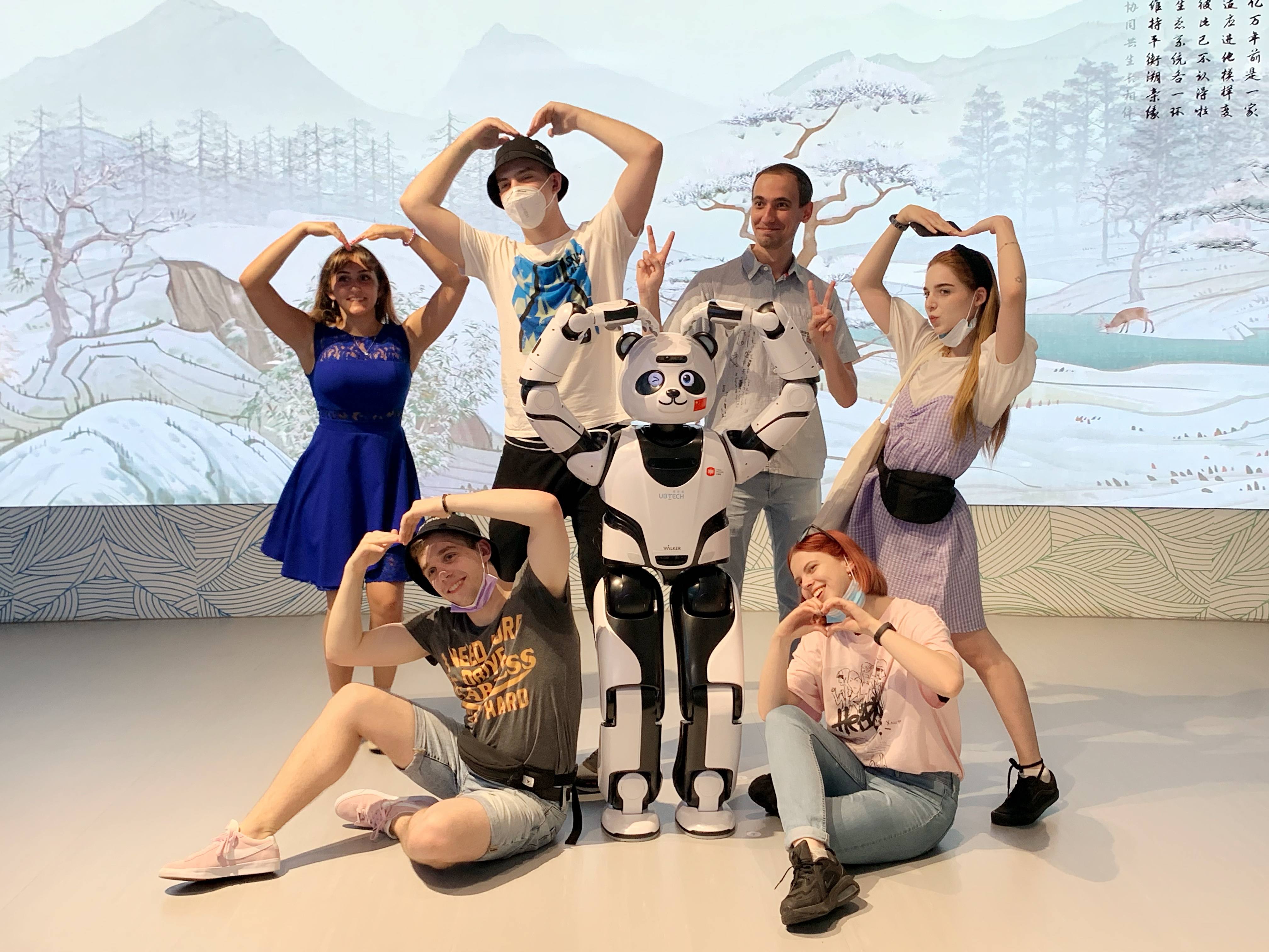 优必选熊猫机器人优悠在迪拜世博会中国馆现场与当地游客互动