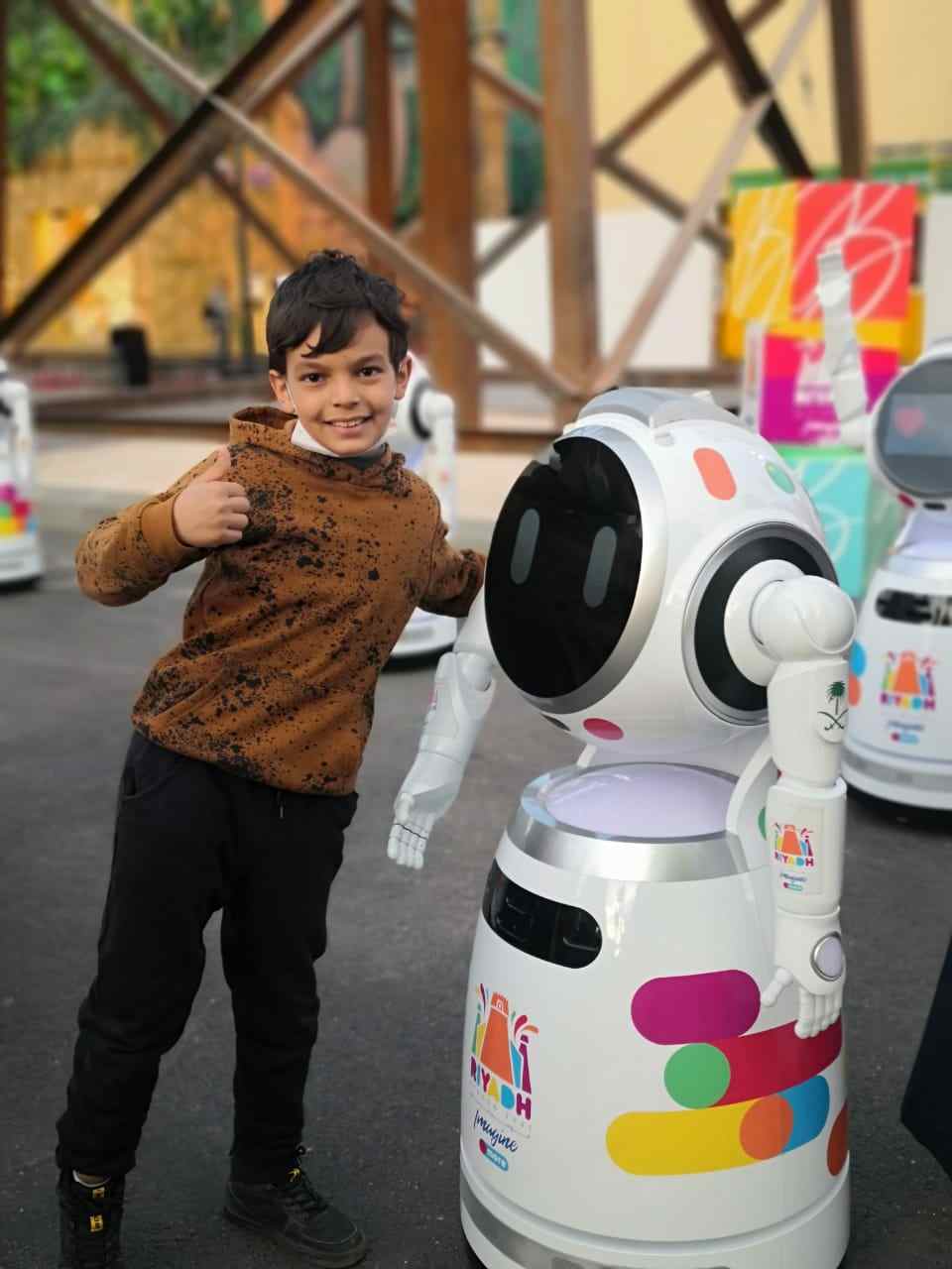 利雅得当地小朋友与优必选Cruzr(克鲁泽)机器人合影留念