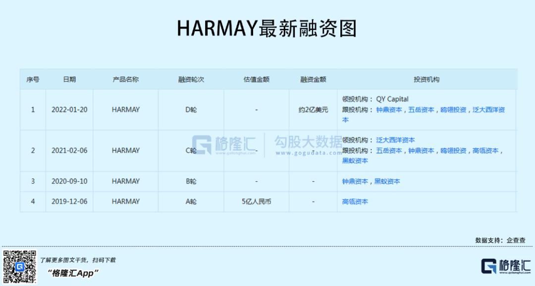 截止目前,HARMAY話梅已共完成4轮融资,黑蚁资本、高瓴等也参与其中。