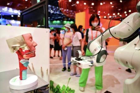 ▲2021服贸会上展出的全自动鼻咽拭子采样机器人(图片来源为环球时报)