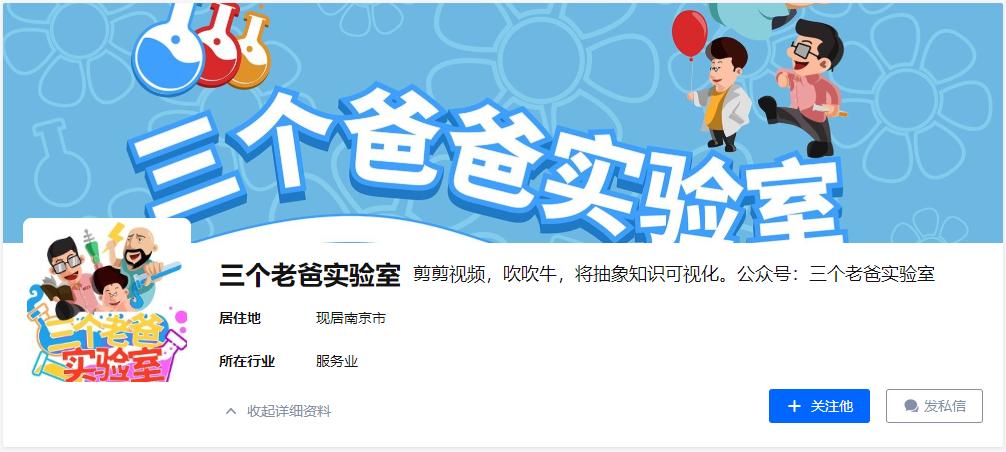 这则视频来自一个名为「三个老爸实验室」的创作团队。