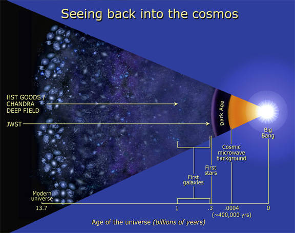 图|从宇宙大爆炸开始看 各个望远镜能看多远 图源:NASA and and Ann Feild