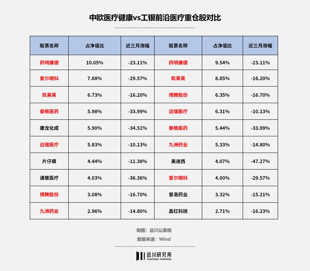 工银瑞信赵蓓在配置方向上与葛兰大体相同,同样看好创新药及创新药产业链、创新医疗器械、医疗服务、消费医疗等行业。不仅如此,两人的重仓股重合度也非常高。