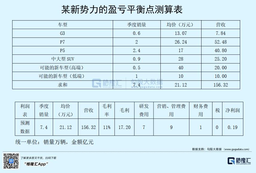 新势力们如果想再次获得抬升估值,实现盈亏平衡是必不可少的。我们以其中一个新势力做测算,它的盈亏平衡点估计还得再等上4年,下面是2025年的测算表。