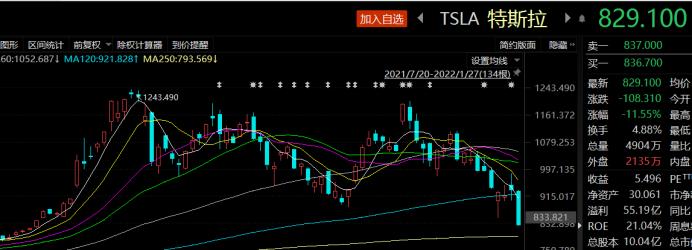 翌日,特斯拉更是一根光脚阴线大跌11%。叠加近期美联储放鹰对整体环境的影响,今年以来特斯拉股价已经累计下跌21%,技术图形明显走坏。
