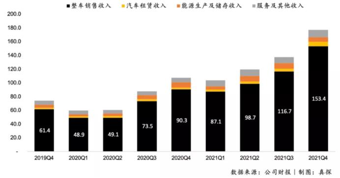 特斯拉走的是一条二者兼顾的道路,但从其财报我们也不难看出,整车销售是其毫无疑问的支柱业务,Q4财报显示,整车销售收入为153.4亿美元,占总营收比为86.6%。