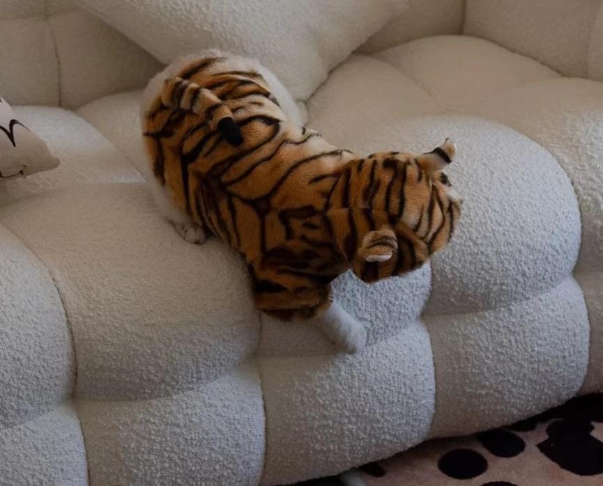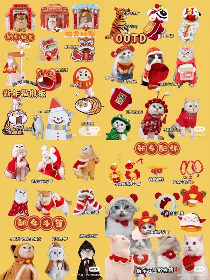 在分享社交平台上,关于虎年迎新的猫周边花样百出。有小老虎样式的“战袍”,也有贴在猫厕所上的小春联,仪式感拉满的同时,实现了高质量社交。95后萌萌是一位云吸猫爱好者,她非常喜欢在社交平台或朋友圈看猫猫狗狗的小视频,“看到宝妈晒娃,时间长了我会屏蔽她;但要是铲屎官晒萌宠,我会鼓励她多晒。”