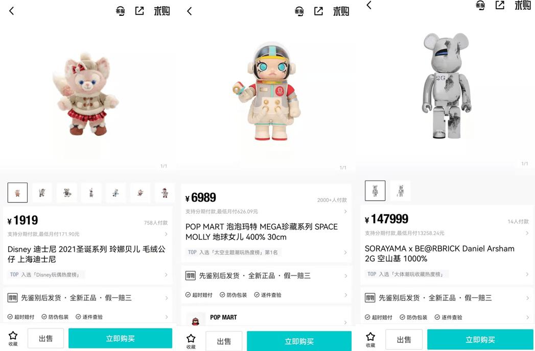 而多人对于潮鞋和潮玩等商品炒作行为的放任、支持,甚至是狂欢,都无疑进一步助长着得物平台上的哄抬物价行为。于此同时,在监管不严的电商平台,高价炒作还会衍生出另一个问题的出现——平台中假货的泛滥。