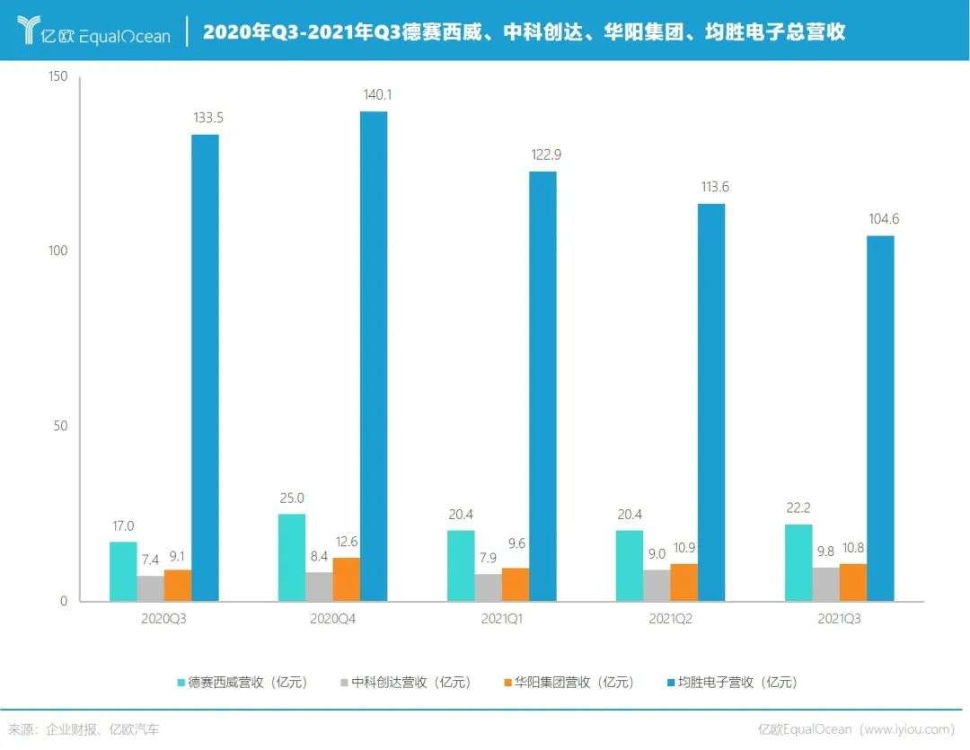 就四家企业近期的营收数据,均胜电子遥遥领先,但有下滑趋势,其余三家基本平稳。