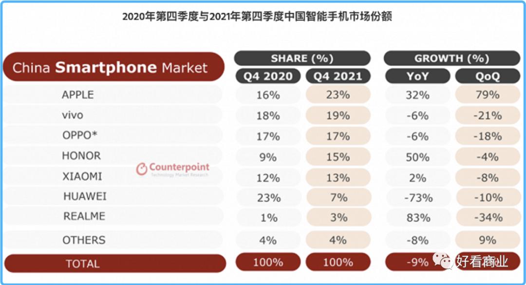 在中国市场,据Counerpoint的数据,苹果也在去年Q4重回市场第一。