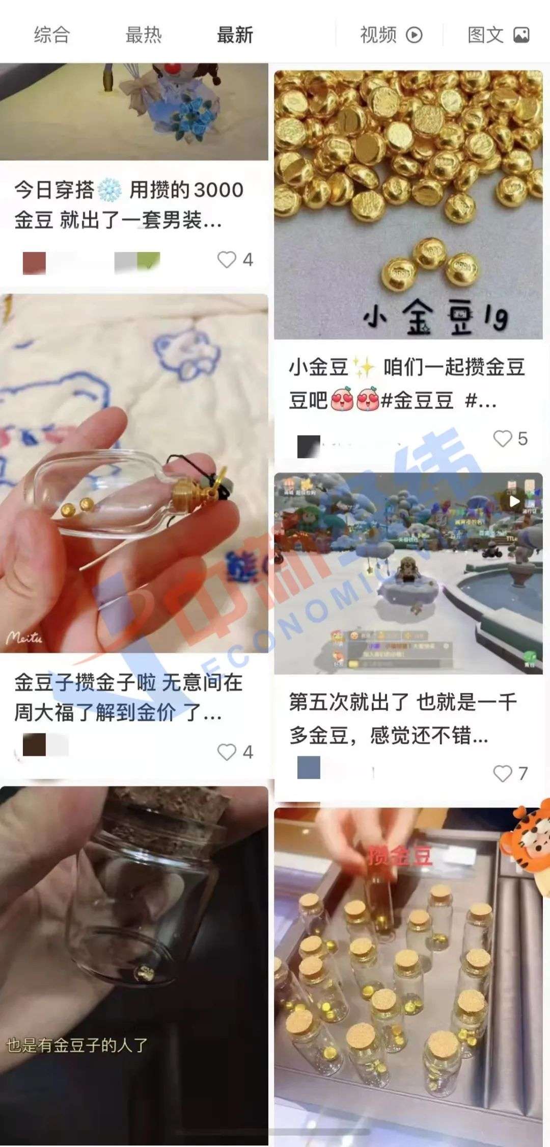 除了在直播间买黄金首饰,还有人热衷于“攒金豆豆”。中新经纬在不少社交平台上搜索发现,有不少关于攒金豆的帖子。