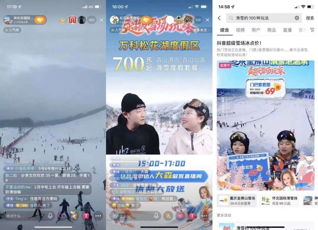 此次活动中,不少雪场还创新性地开展了场景化直播方式——主播身处雪场,为粉丝直接而鲜明地展现雪场的独特优势,真正实现了直接创造需求并一站式下单承接的消费新链路。依托抖音的流量优势,雪场的直播还可以让更多不了解滑雪运动的消费者看到,产生兴趣。