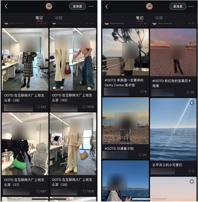 有一位博主就通过不断分享“在互联网大厂上班的穿搭”,在短短的两个月时间里涨了 9.2 万粉丝,笔记的平均点赞量在 1000-2000 左右。而在此之前,该位博主也曾分享过自己的穿搭,但获得的点赞只有寥寥的两位数。