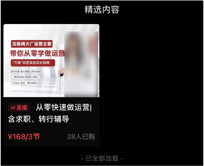 一位某互联网大厂的运营总监(粉丝 3.9 万),在小红书上售卖“如何从 0 快速做运营”的求职相关课程。能看到,客单价为 168 元的课程目前已售出 28 份,总收益超过了 4000 元。