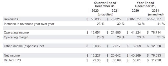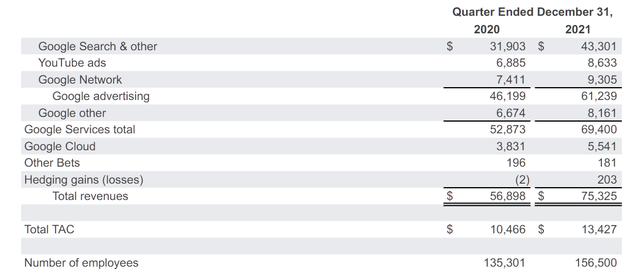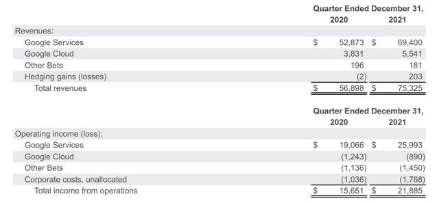 谷歌的2021年第四季度,超预期成为关键词: