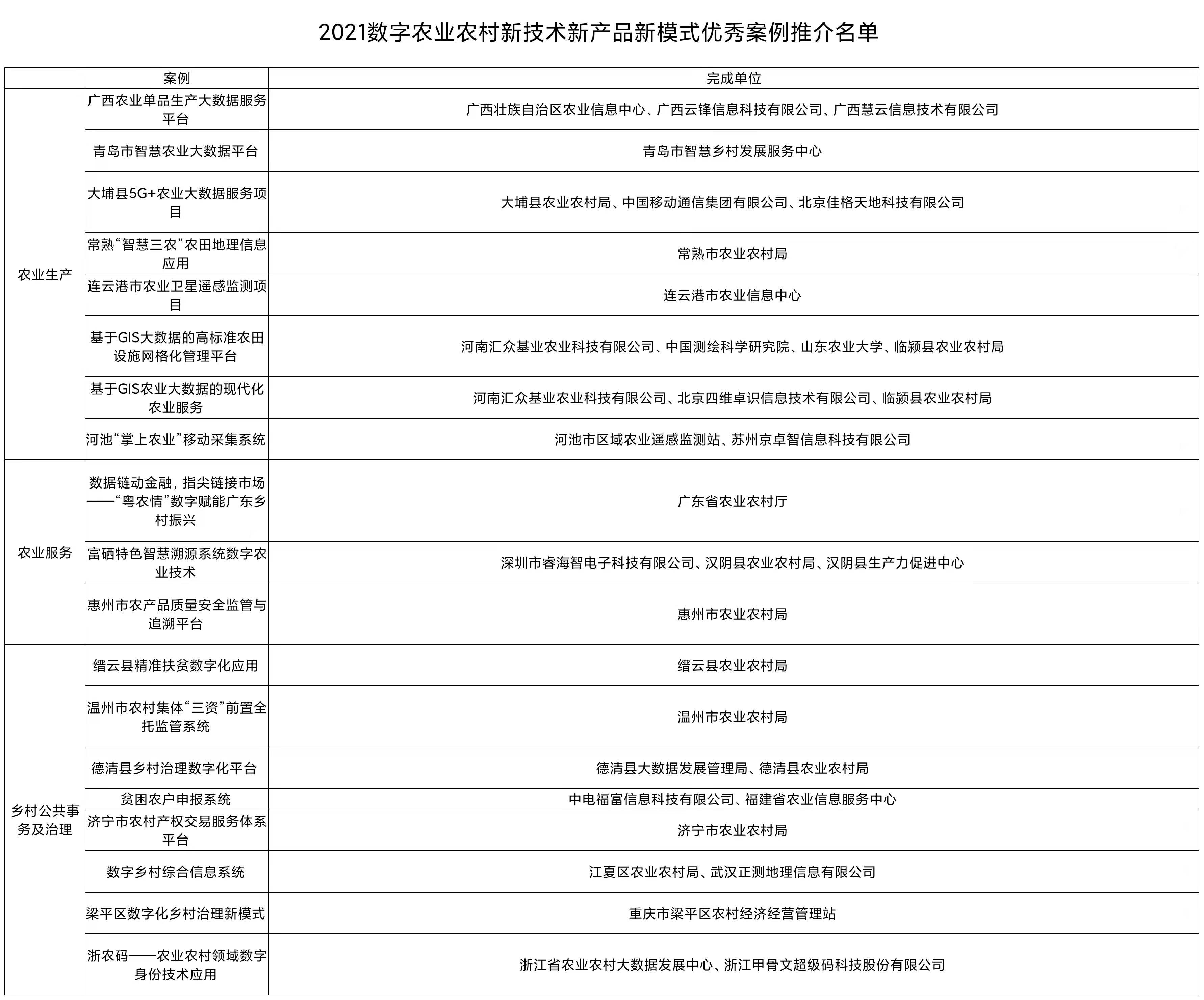 2021农业农村部新技术新产品新模式优秀案例节选