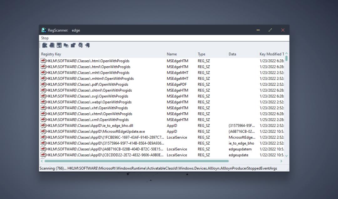 要是读者曾经使用过注册表编辑器,就不难发现这个历史悠久的 Windows 组件非常难用。现代编辑器该有的撤销、导出单个条目等功能它一概没有,尤其是查找命令,一次只显示一个结果,非常低效。RegScanner 就是对编辑器查找功能的增强:除了更复杂的匹配命令,它的优势在于一次展示所有结果。