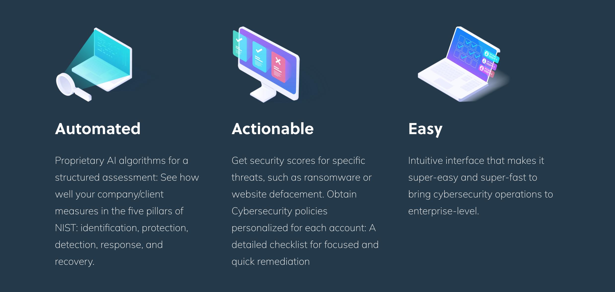 这家初创公司的vCISO平台为企业提供了基于NIST的安全评估,包括针对特定威胁(如勒索软件或数据泄漏)的安全评分,以及针对外部暴露资产的隐患和开发的“最先进”的评估。