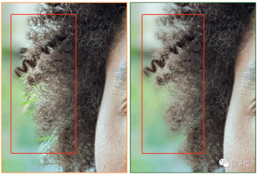 看这效果,原本模糊的头发轮廓,咻地一下,就变成了纤毫毕现的样子!