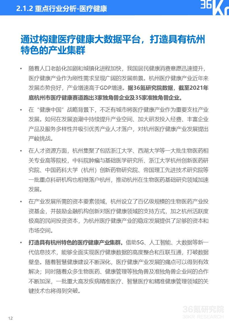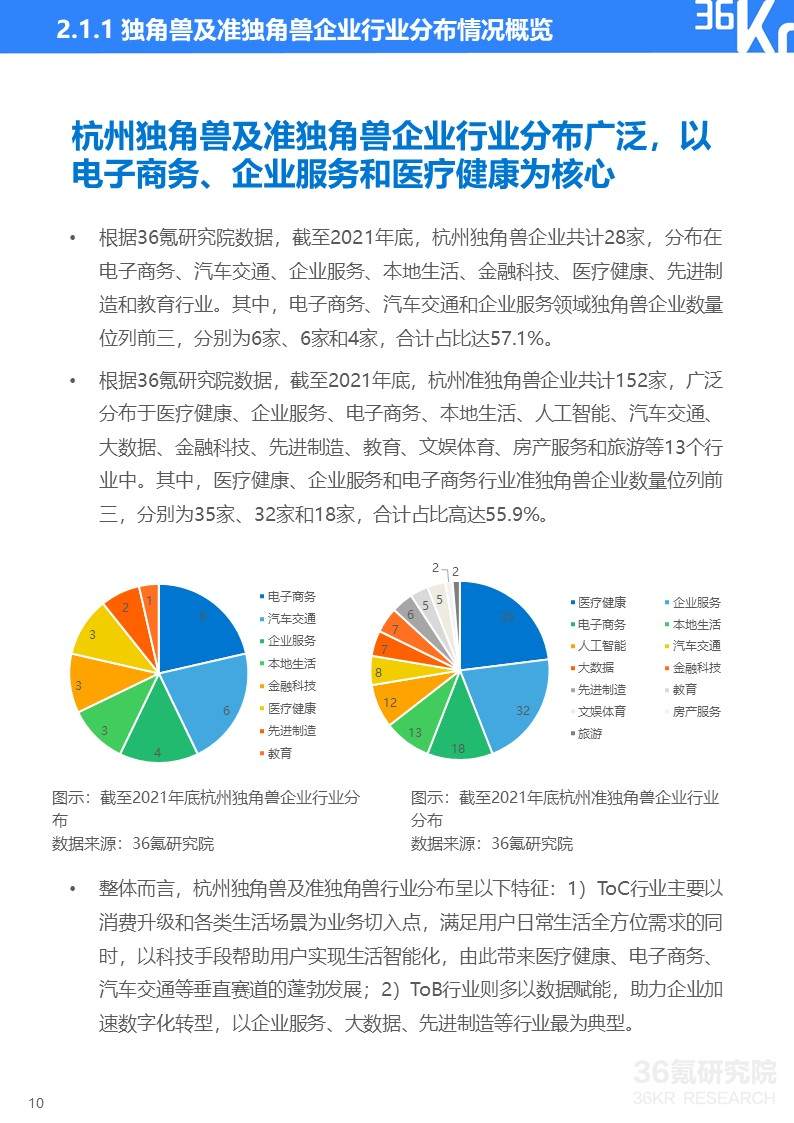 36氪研究院 | 2022年杭州独角兽及准独角兽企业研究报告
