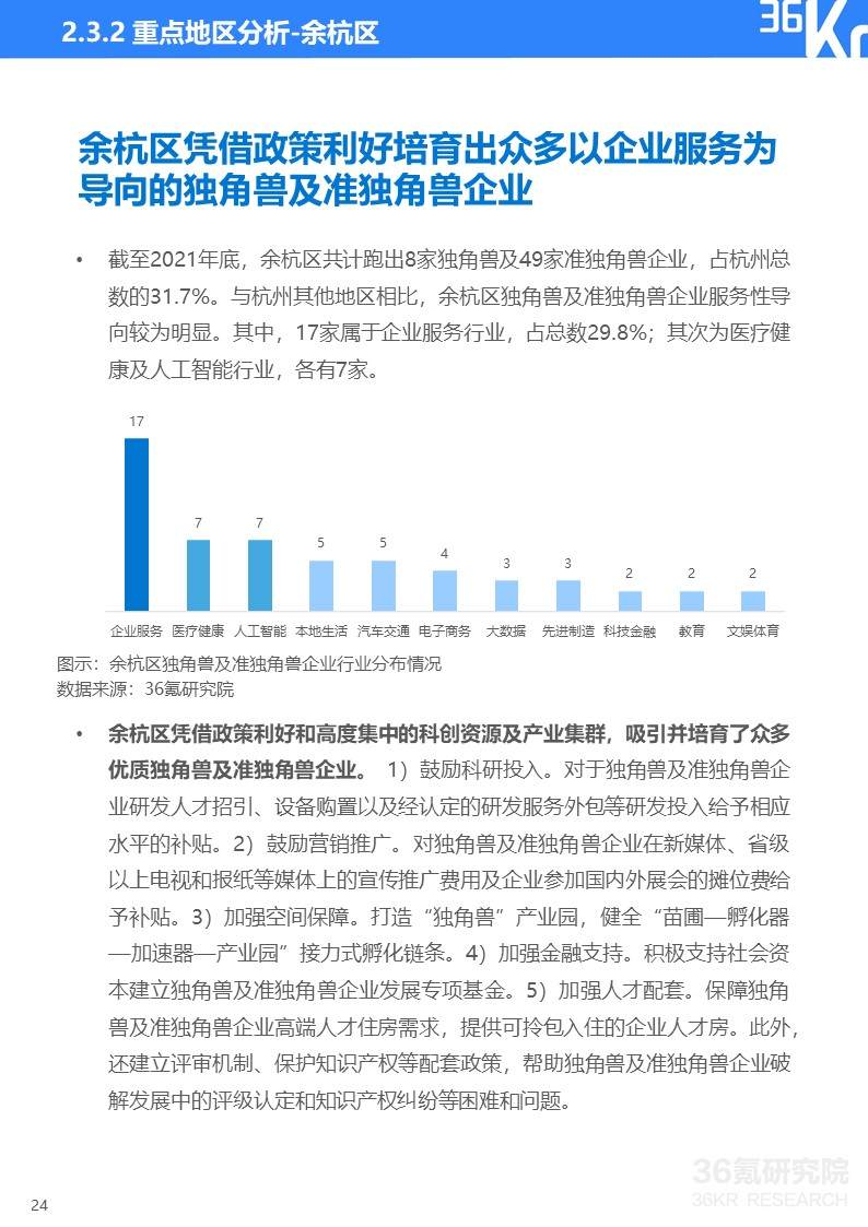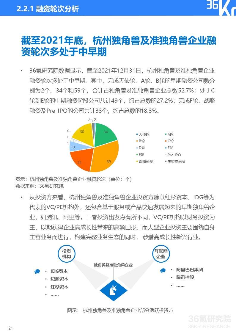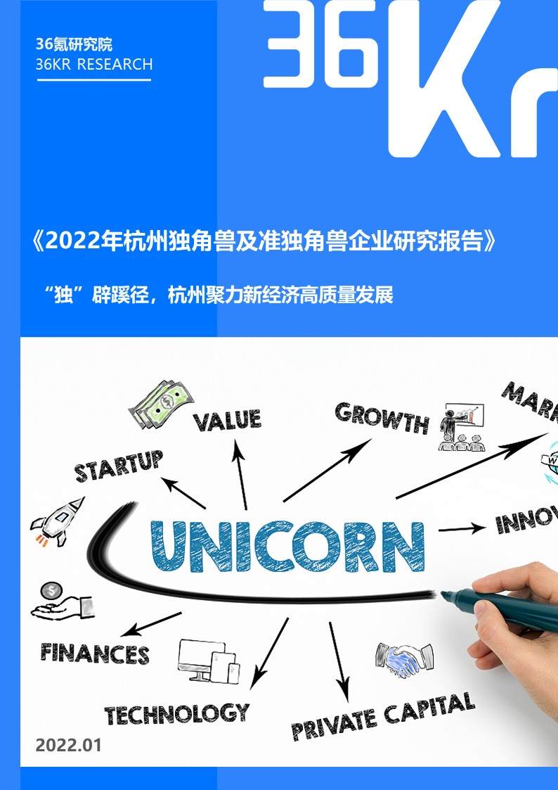 更多精彩内容,请关注“36氪研究”微信公众号。如想获取《2022年杭州独角兽及准独角兽企业研究报告》,点击下载链接,提取码:itws,或在36氪研究院微信公众号上回复“杭州独角兽”获取下载链接。