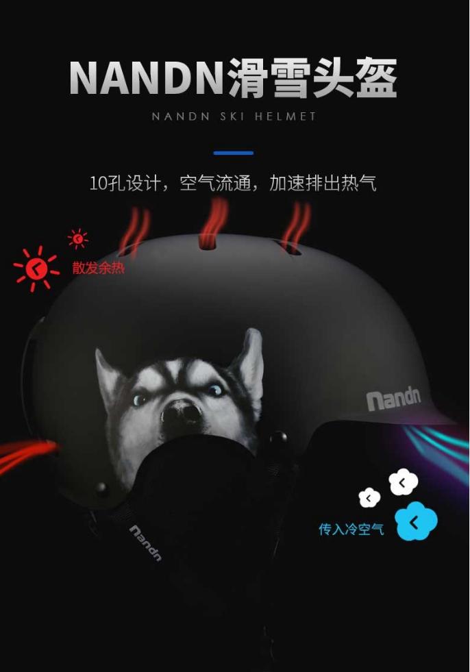 南恩头盔的有十多款颜色,针对男生、女生有鲜明的风格,比如有的头盔上印有哈士奇,有的印有小猫咪。南恩头盔集合六大特新,包括可拆卸内衬、3D头围调节器、便携式扣带、头带支架设计、一体成型头盔、自然通风系统。南恩作为新锐品牌,在国产滑雪配件中,算是较好将平衡了产品功能、外观设计、产品价格,希望看到南恩能抓住后冬奥市场的机会,在全球滑雪头盔领域有中国品牌的位置。