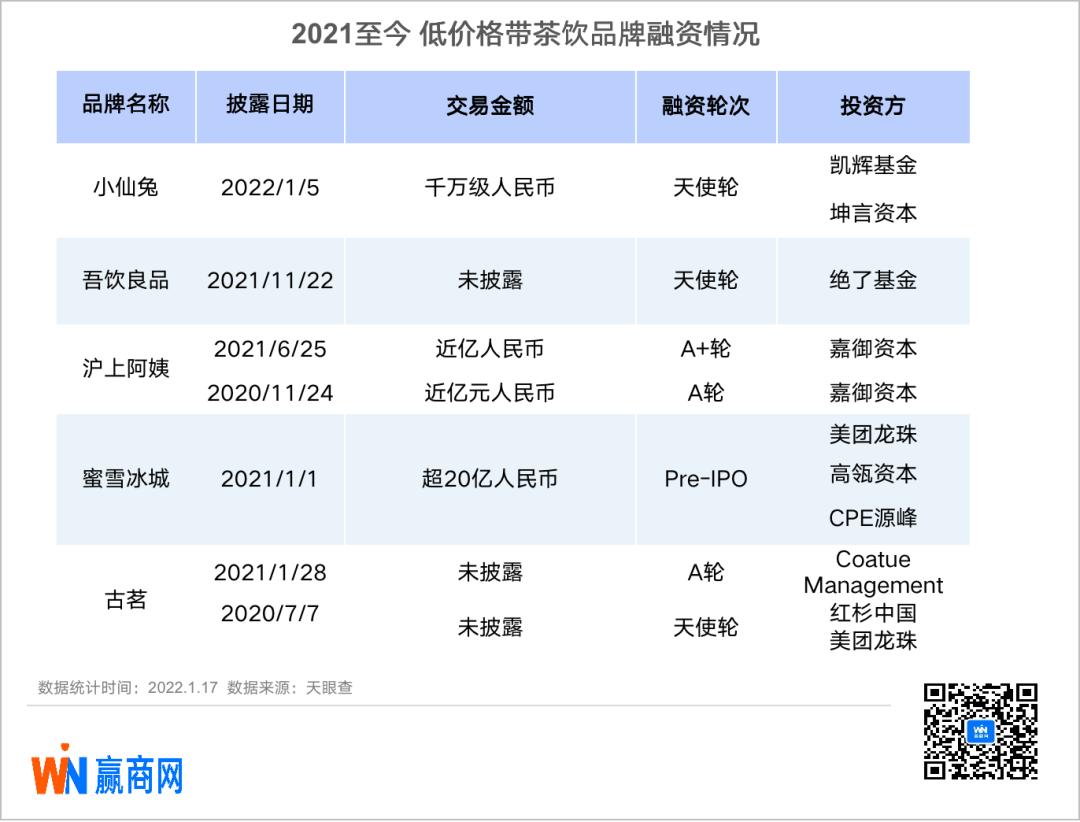 而在2022开年之际,赢商网获悉主打性价比的会员制茶饮品牌「小仙兔」完成千万级天使轮融资,投资方为凯辉基金和坤言资本,杉洲资本担任财务顾问。