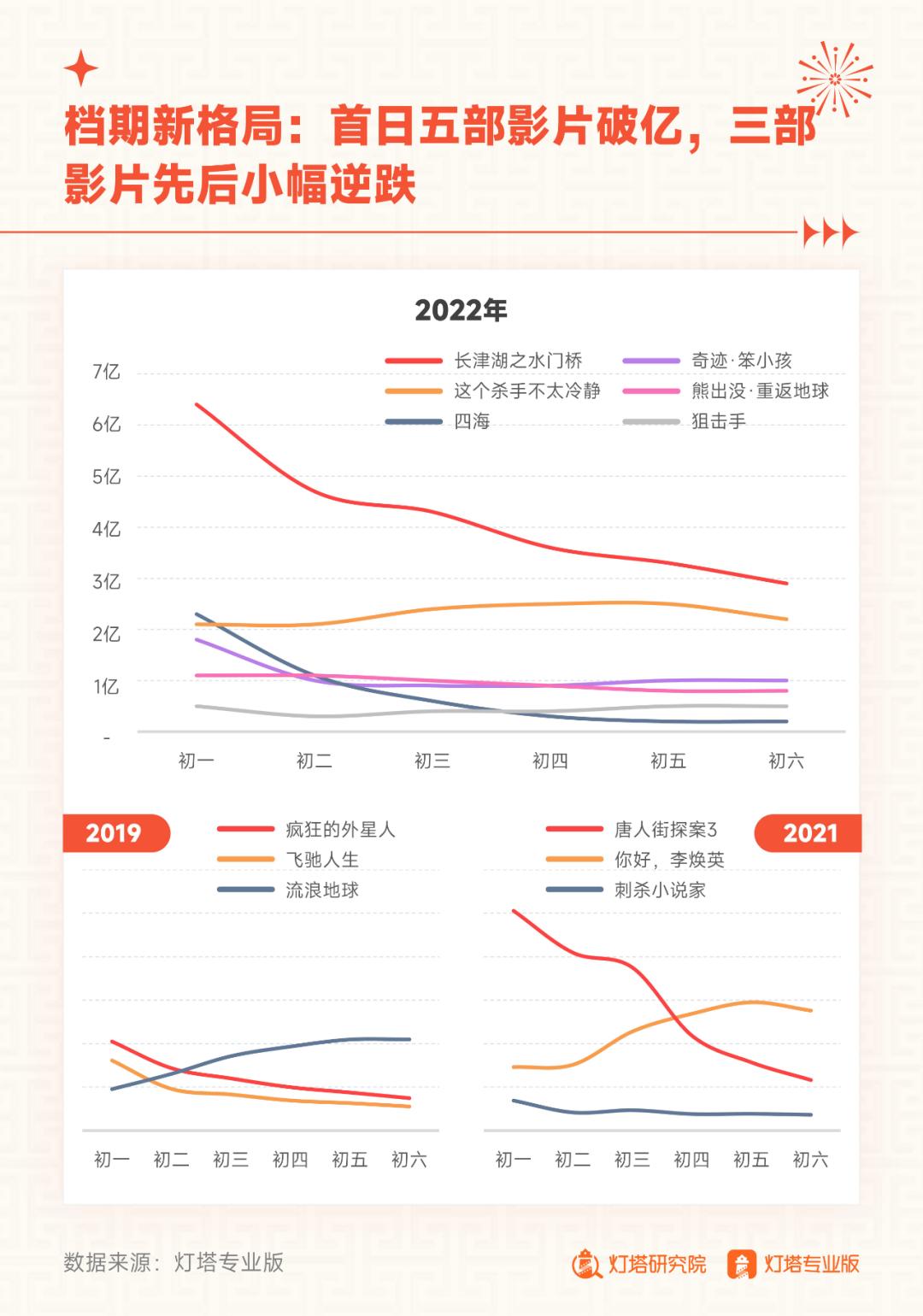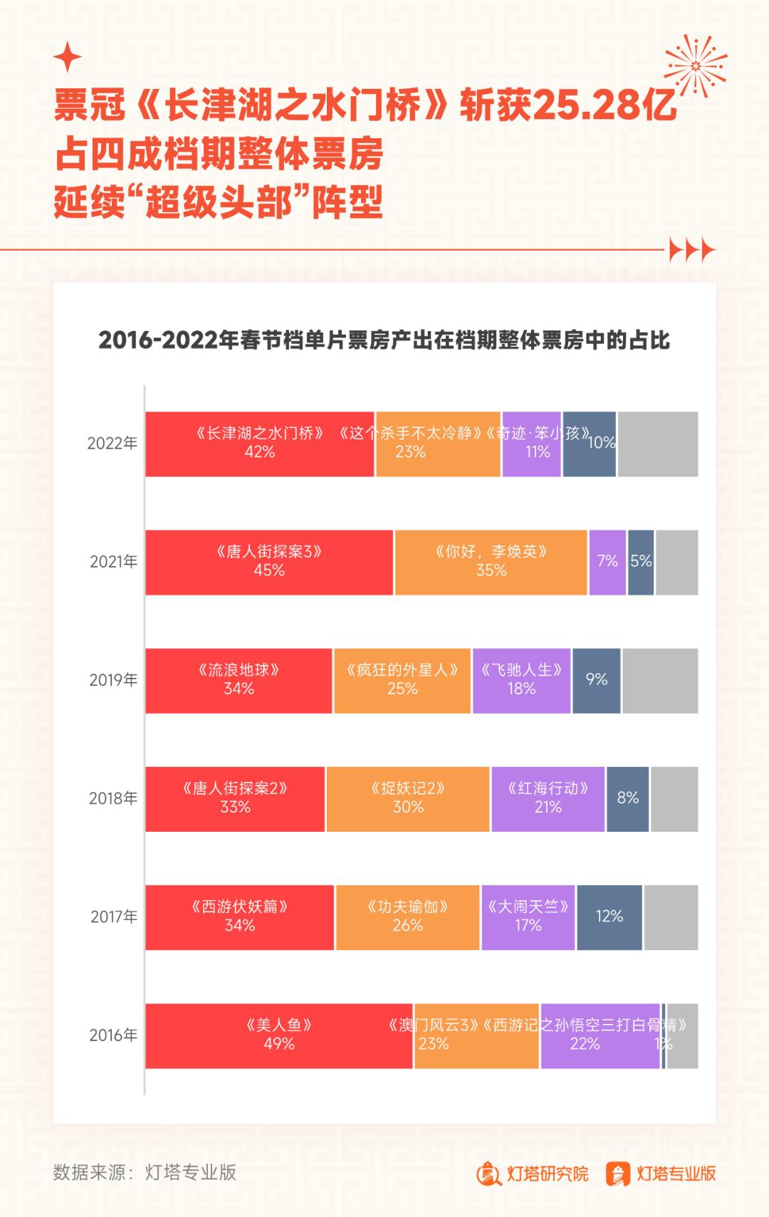 站在春节档的时节点复盘,今年票房成绩仍然给2022年开了一个好头,诸多新现象、新洞察,也将为从业者注入托底的信心,相信随着时间的推移和疫情形势的好转,中国电影会继续创造新惊喜。