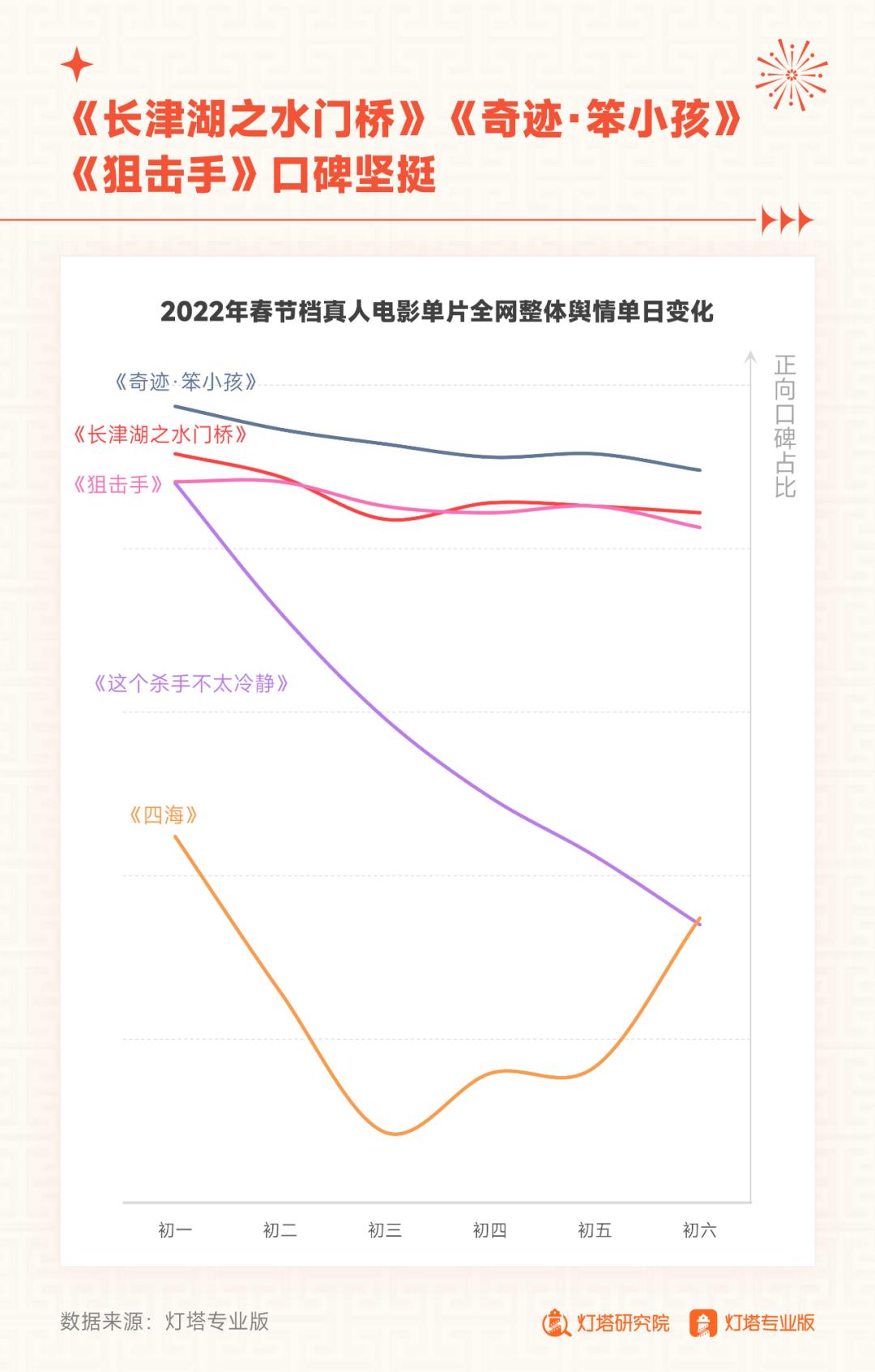 不论是超级头部《水门桥》,还是黑马《杀手》《奇迹》《狙击手》,都再次验证了口碑仍是春节档关键变量的趋势,但是精细化拆分来看,又有一些个体化差异。