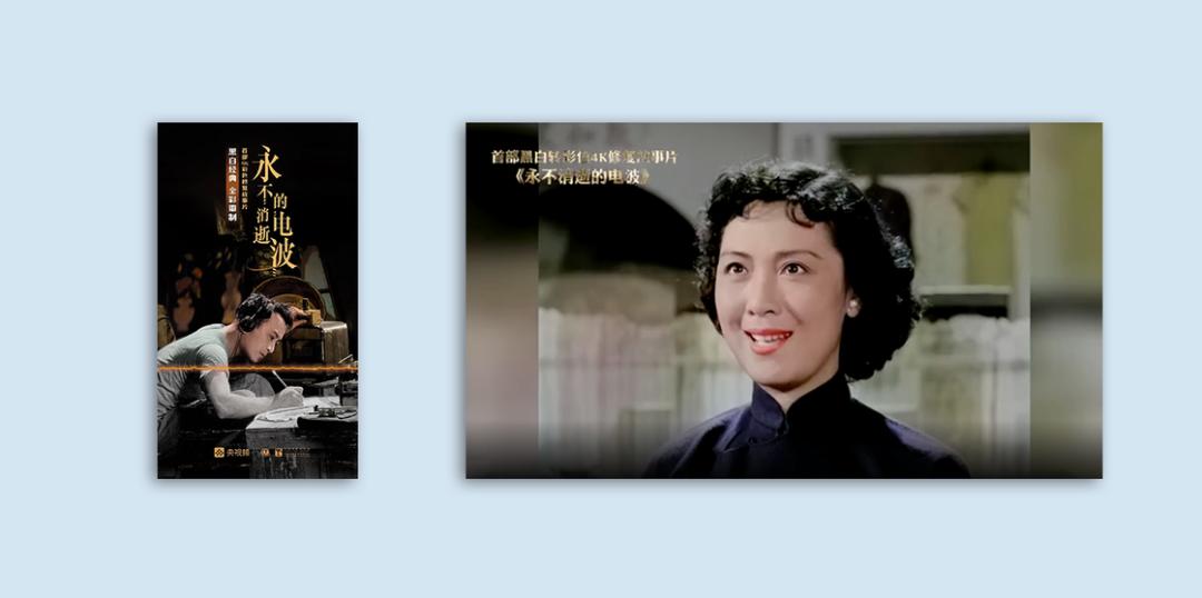 《永不消逝的电波》是国内第一部黑白转彩色的 4K 修复故事片,在修复的过程中采用了 AI 上色技术与传统修复手法相结合,对原片进行了逐帧修复,涉及 16 万帧的工作量。2021 年 10 月 6 日起,该电影已经陆续上映全国电影院线。