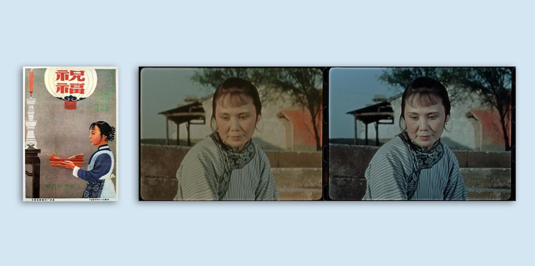 《祝福》是新中国第一部彩色故事片。2020 年,该影片的 4K 修复版入围戛纳电影节经典单元。同年该影片也在多地展映 。目前该 4K 修复版也可以在一些网站上搜寻到。该影片的经典版也可以通过访问http://public.163.com/special/winterofthreehairs/ 进行观看。