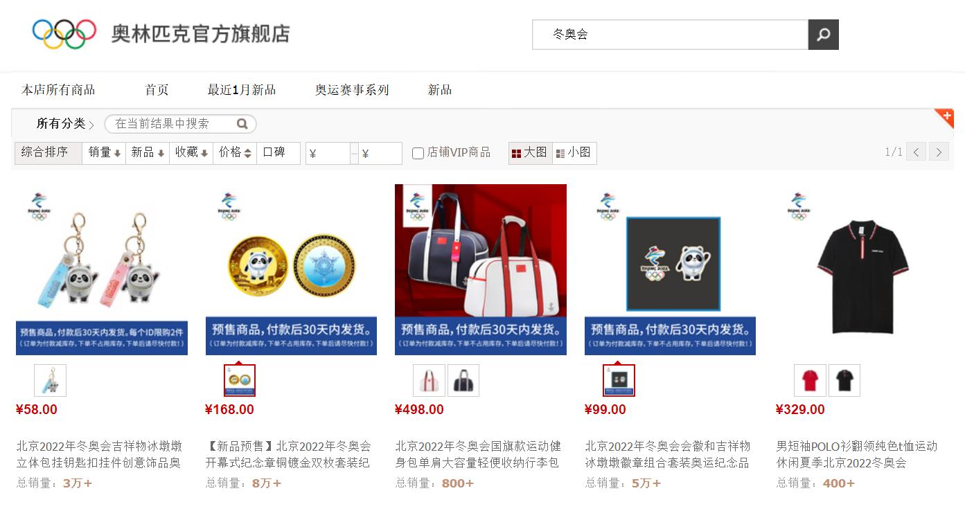 根据阿里巴巴发布的《虎年春节消费趋势报告》显示,2月4日当天有超过百万人涌入奥林匹克天猫官方旗舰店,关于冰墩墩的周边产品,如钥匙扣和纪念徽章等都是被瞬间秒空。