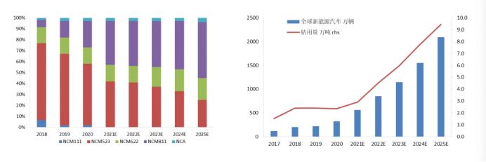 图2:三元高镍化进程、动力电池用钴量维持确定性增长来源:GGII