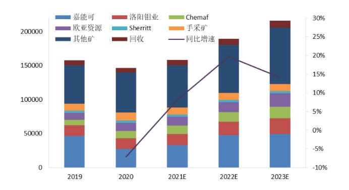 图3:2019-2023年钴供应及同比增速(吨)来源:东兴证券