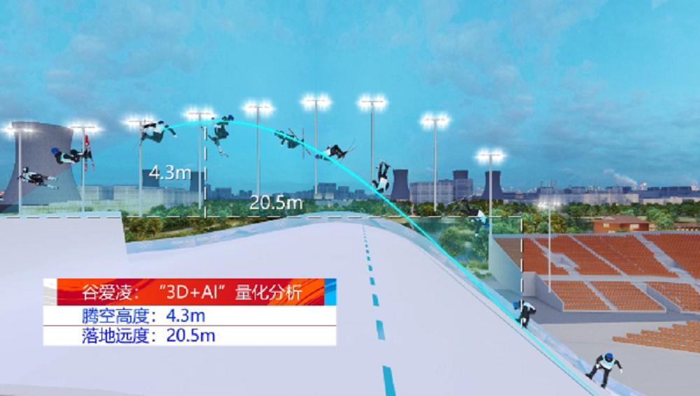 该系统运用AI无干扰三维动作捕捉、超宽带精准定位测试、北斗导航、高速运动自动跟拍机器人、无人机摄影等多项技术,对运动员的助滑、起跳、飞行和落地的姿态进行系统分析,精确测算起跳高度等指标,为教练和运动员调整训练方案提供科学数据支撑。