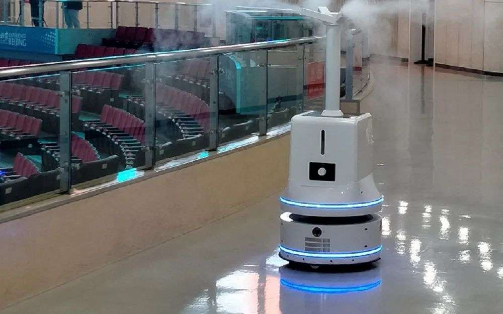 还有一些专职消毒的机器人是在场馆中默默地工作,例如五棵松体育中心使用有雾化消毒机器人,它可以在一分钟内完成36平方米的空间消毒工作,通过App发布指令,指定机器人的消毒区域,管控消毒时间,将场馆消毒可视化、可追踪溯源化。其实,平时我们在很多火车站、机场、园区就已经见过这些消毒机器人了,现在冬奥会直接使用了这些比较成熟的消毒机器人用于防疫。