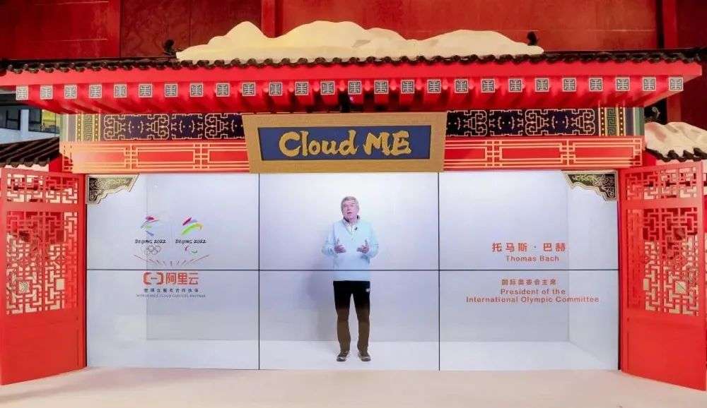 ▲国际奥委会主席托马斯·巴赫通过阿里云全息舱给媒体工作人员拜年