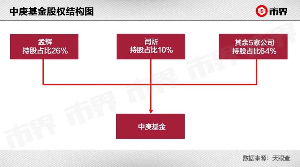 天眼查显示,中庚基金目前由孟辉、闫炘两个自然人和5家公司共同持股。