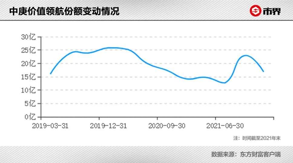2020年3月末,中庚价值领航基金份额25.21亿份,到2021年6月末下降至12.68亿份,直接腰斩。