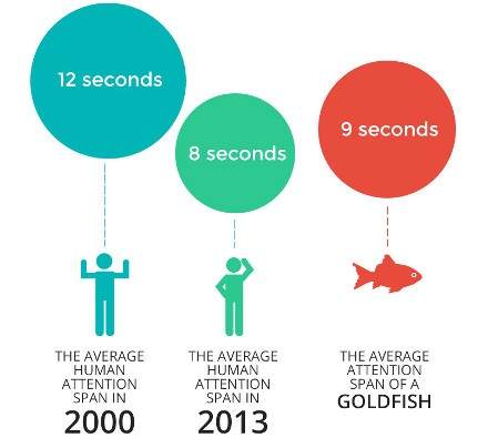 人的注意力广度越来越短。资料来源: MindfulMooves