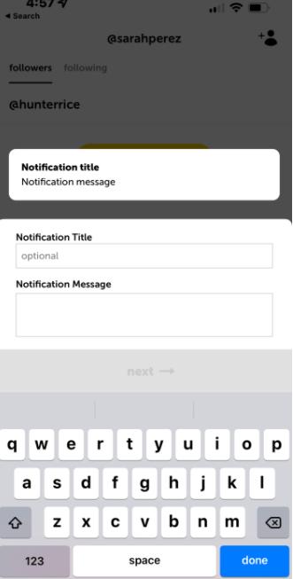 「push it」虽然是一个工具,但是在 App 内还是引入了一个社交媒体中常见的关注与被关注的机制,当一个用户被其他用户关注之后,这个用户就可以通过「push it」向自己的关注者发送信息,消息则会以手机推送的方式推送至关注者的手机上。