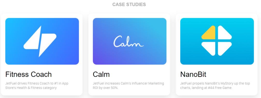 Fontmaker 能够借助 JetFuel 实现快速增长也许跟它与 JetFuel 之间特殊的关系有关,但事实上任何 App 都可以申请通过 JetFuel 来做营销增长。根据 JetFuel 在官方网站上的展示,Fitness Coach、Calm 等知名 App 也在借助 JetFuel 做增长。