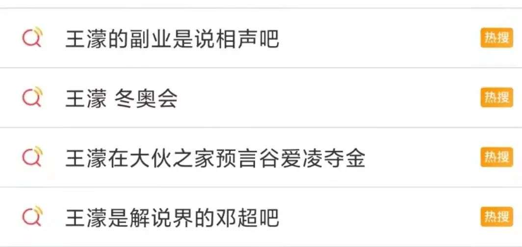 2月5日,微博话题“王濛解说”登上热搜第一位,并显示“爆”,随后“被王濛的解说笑死”“王濛拍桌子”等话题接连登上热搜。