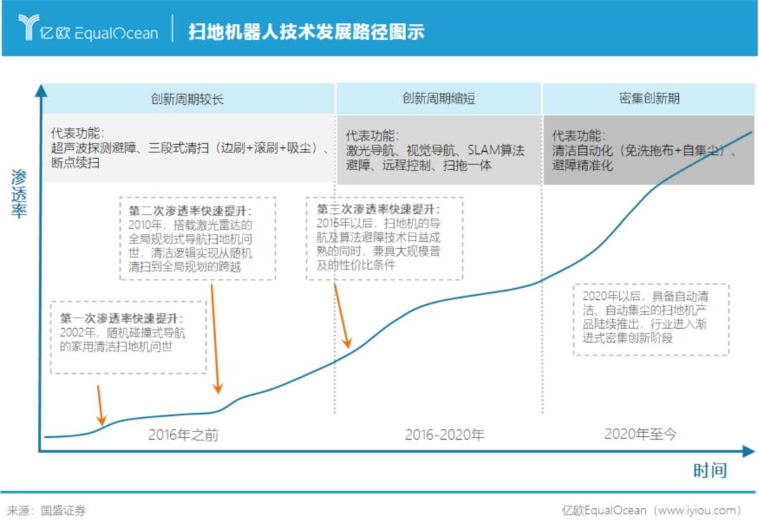 2016年前后,随着底层技术逐步成熟,全局规划、LDS激光模组、SLAM算法叠加运用,扫地机器人产品整体水平大幅提升,富有竞争力的特色产品加速带动产业升级。