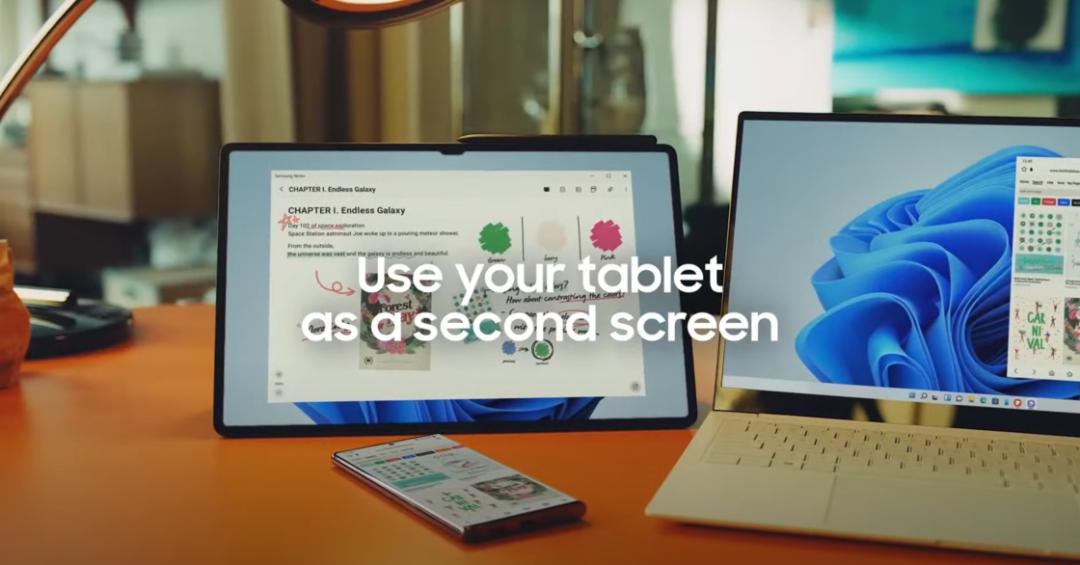 微软也一直是三星的重要合作伙伴。除了在移动端 Office 套件中适配 S Pen 特性之外,现在你可以在支持 WiDi 且系统版本高于 Windows 10 v.2004 的电脑上,将 Galaxy Tab S8 当作 Windows 电脑的扩展屏使用,是不是有 Apple 生态那味了?