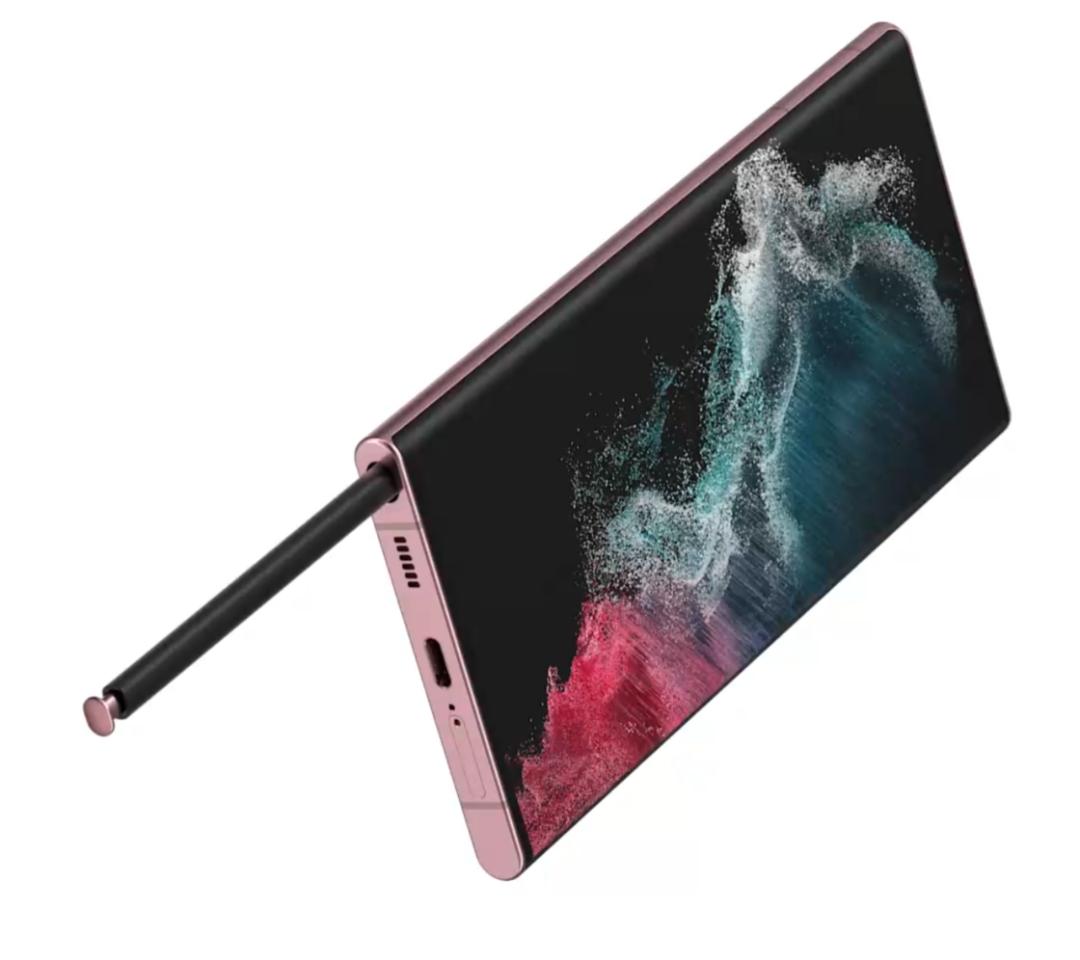 既然是 Galaxy Note 系列的「继任者」,Galaxy S22 Ultra 也毫不意外地成为了三星首款内置 S Pen 的 Galaxy S 系列手机。S Pen 收纳位置在手机左下方底部,在改良的硬件和 AI 触控点预测算法的加持之下,Galaxy S22 Ultra 的 S Pen 响应灵敏度据称是前代 Galaxy Note 和 Ultra 产品的 3 倍。