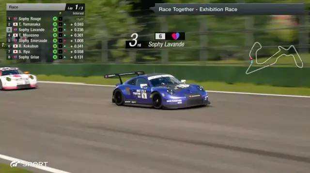 不过,比赛一开始,名叫薇奥拉(Violette)的GT Sophy人工智能变体就完成了对人类车手的超越,排到第二位。